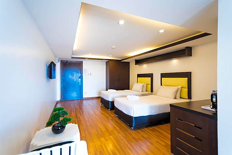 Located on a higher level, larger room features a TV, safe, fridge, mini-bar, sofa and balcony. Shower facilities are included in an private bathroom.